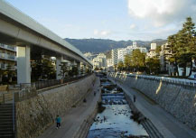 南北には市バスや民営バスが走り、坂の街を支えています。